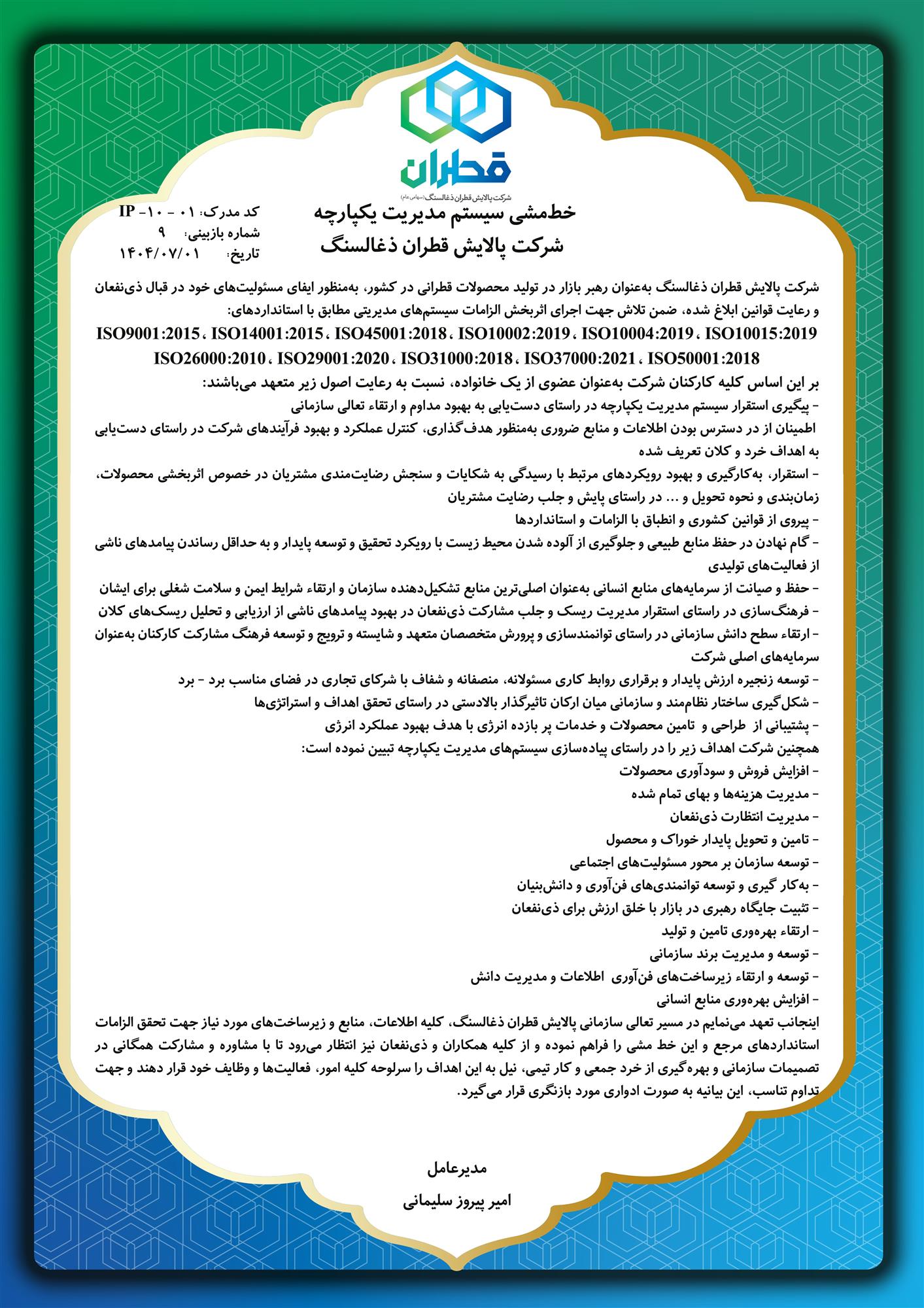 خط مشی کیفیت